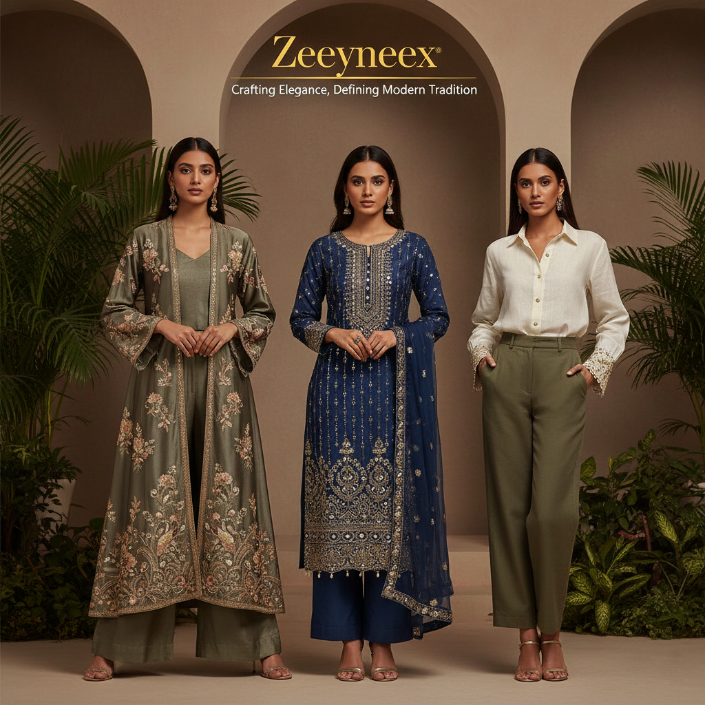 - Zeeyneex Apparel is a contemporary fashion brand positioned in the premium segment, offering thoughtfully designed apparel for Men, Women, and Kids.