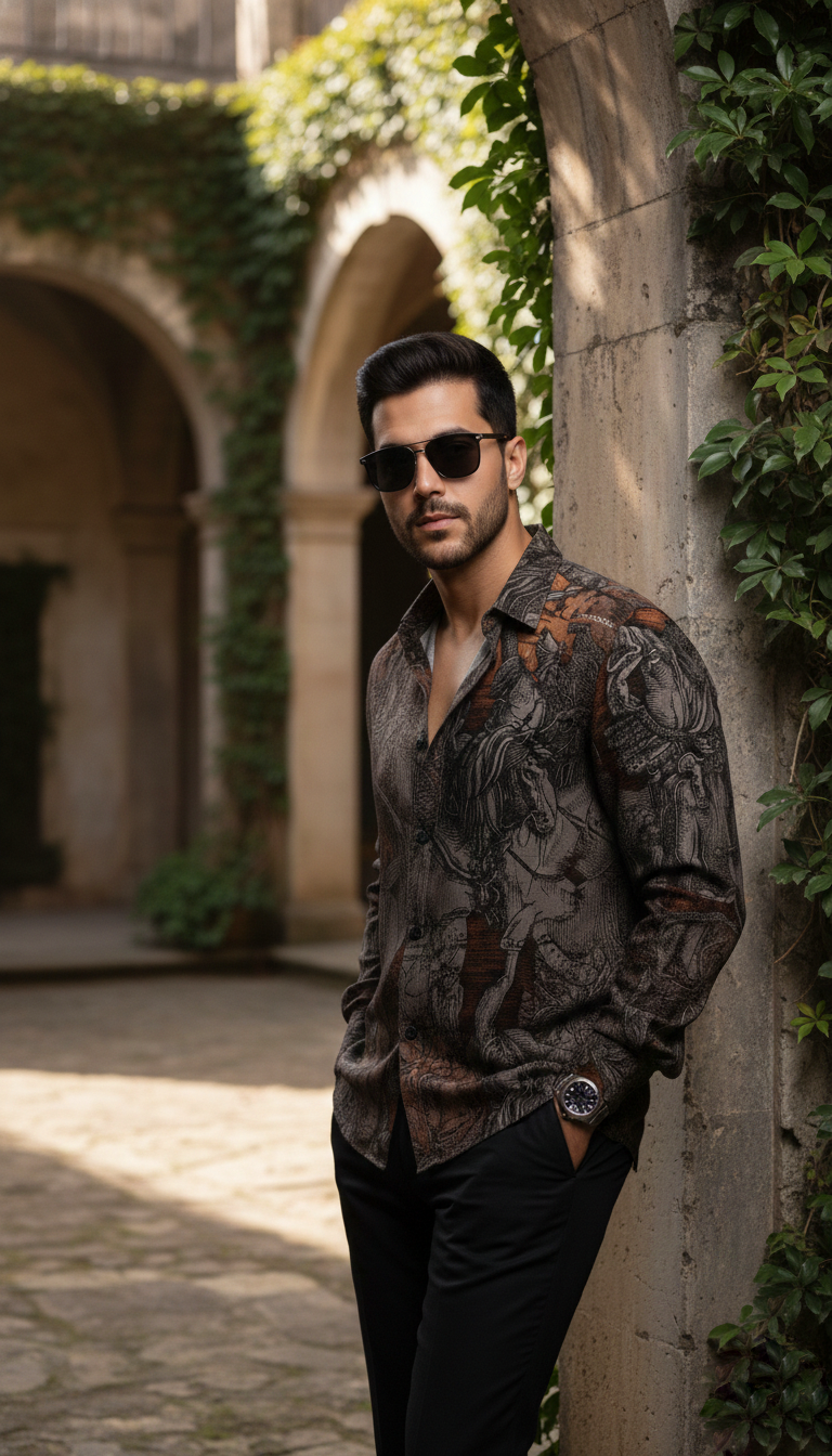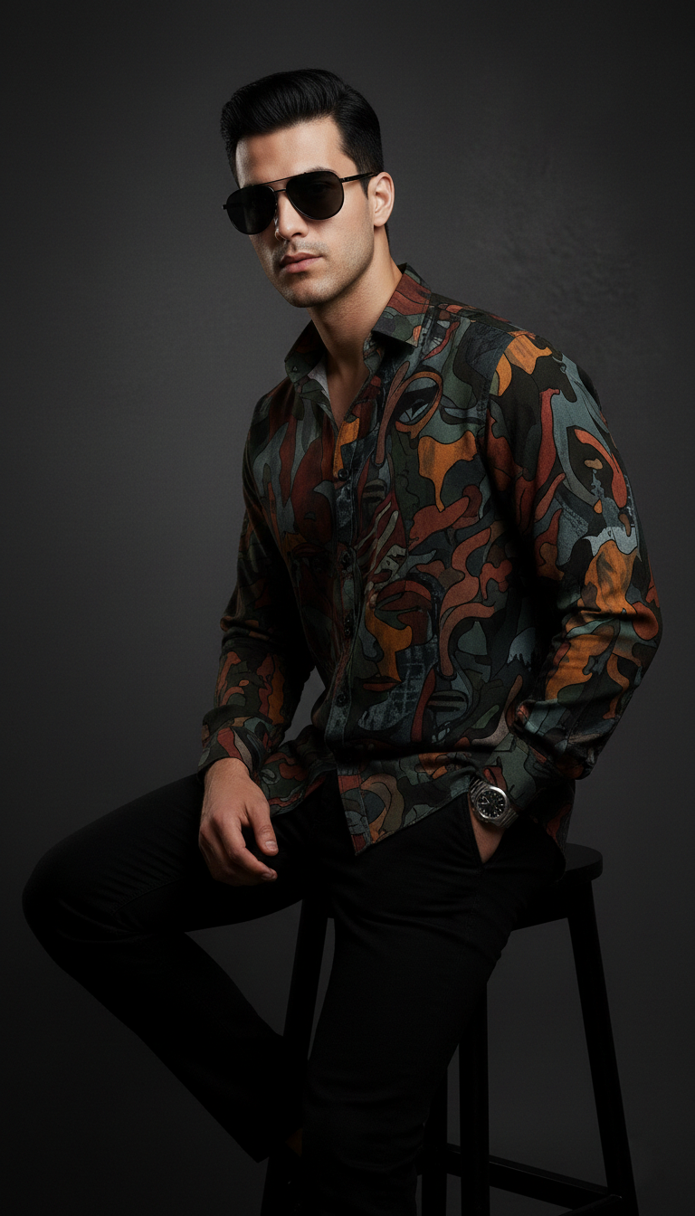 The unique graphic print is thoughtfully composed to create visual depth and...
