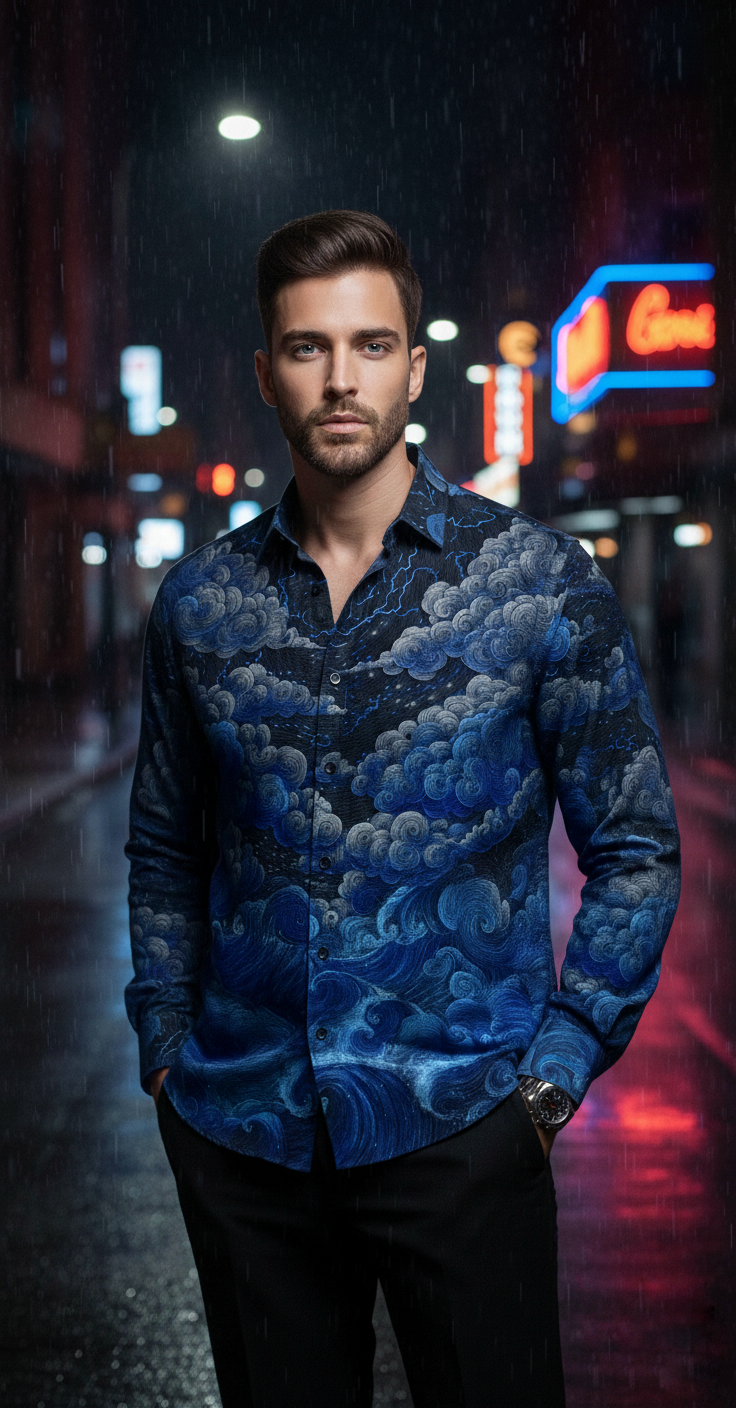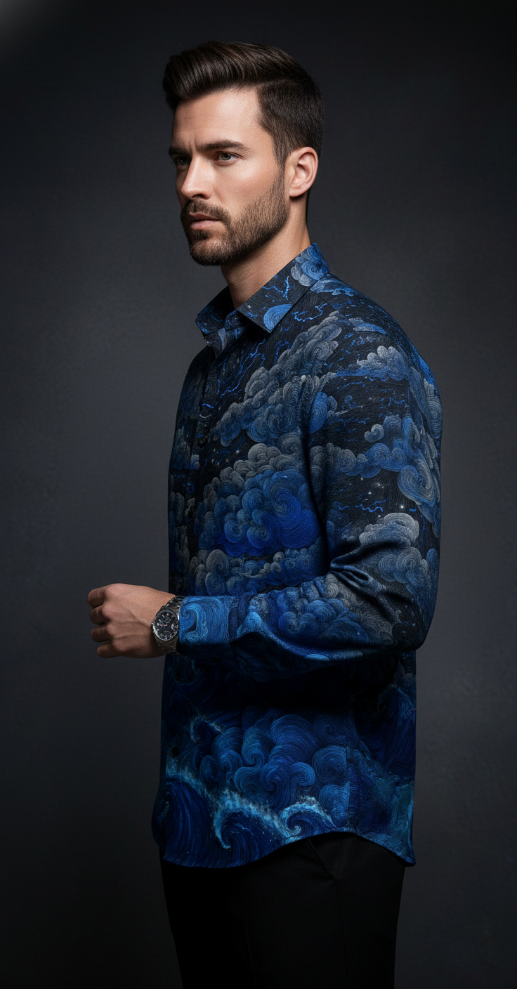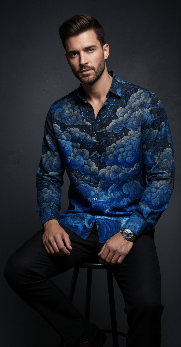 This luxury men’s shirt is crafted for those who appreciate statement style with understated elegance. Designed in a regular collar silhouette with full sleeves, it balances classic tailoring with contemporary attitude.