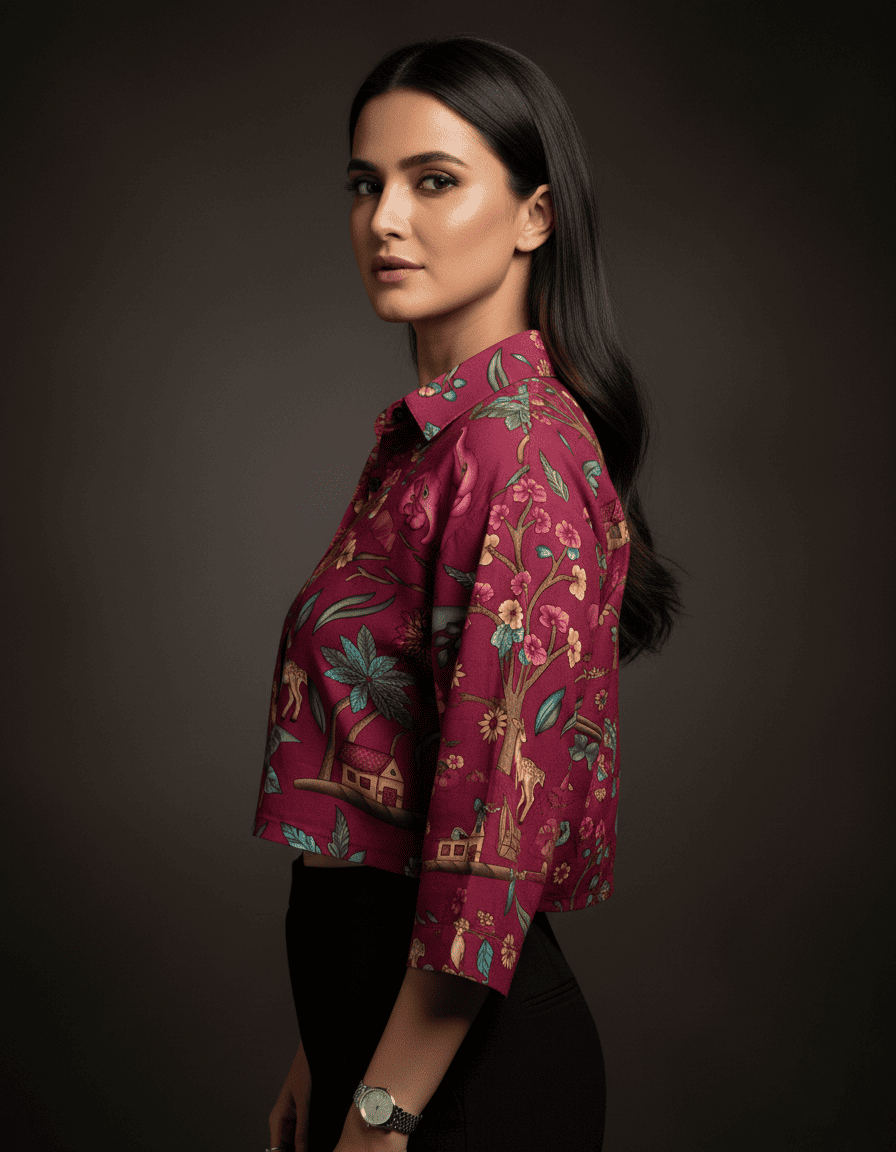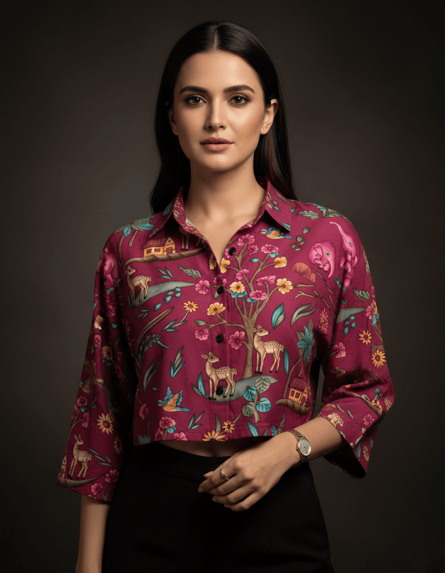 Bring artistic charm to your wardrobe with this beautiful women’s nature print top. Designed with intricate floral, wildlife, and landscape-inspired patterns, this top creates a unique and eye-catching look. The classic collar and button-front design add a modern touch, while the soft breathable fabric ensures comfort for all-day wear. Its relaxed silhouette and three-quarter sleeves make it versatile and easy to style for various occasions.